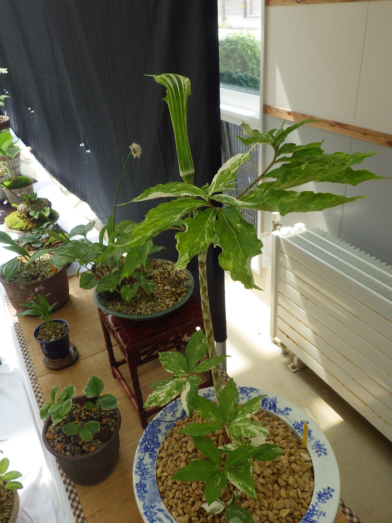 斑入り愛好会の皆さんが栽培する斑入りの植物55点を展示しています。