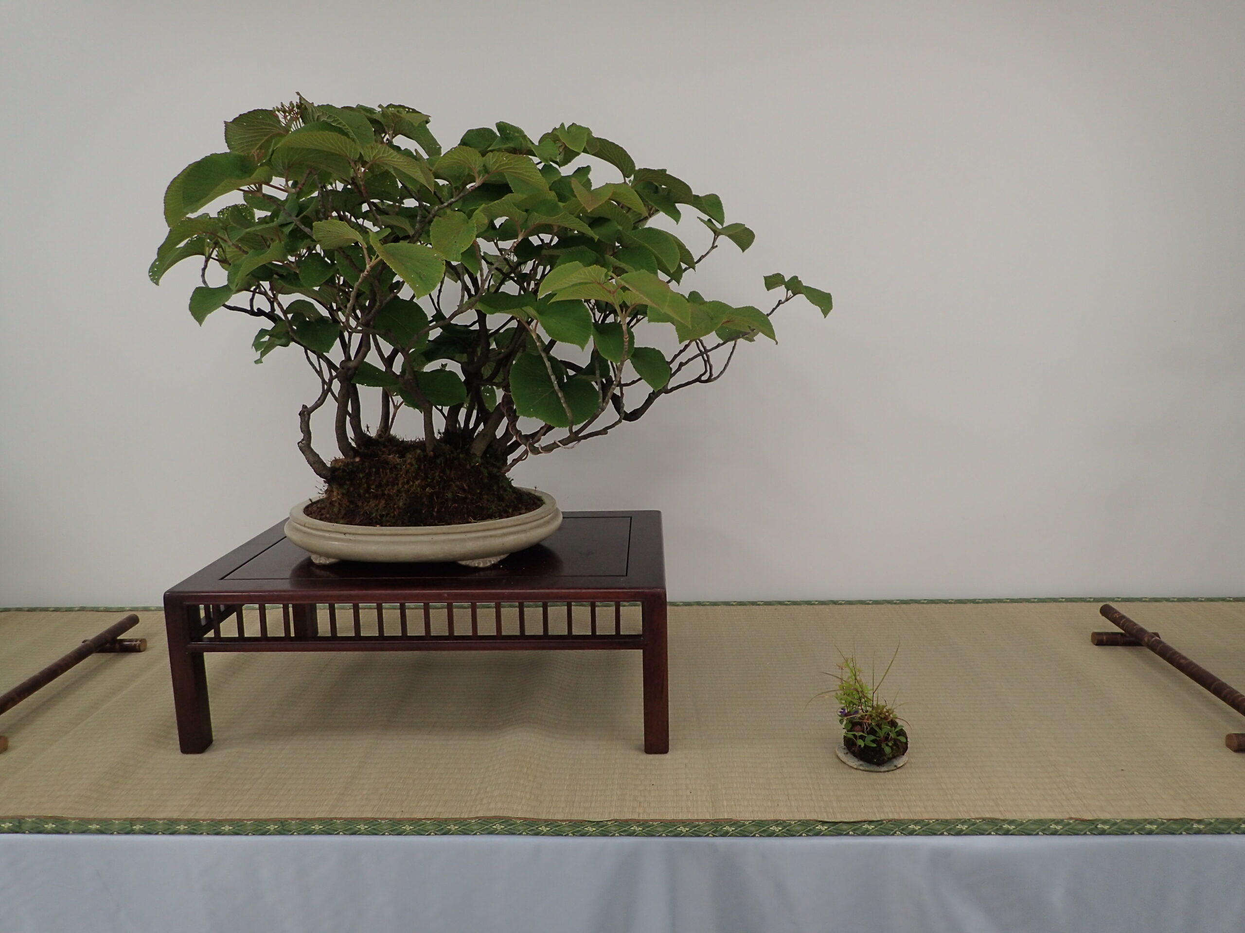 このオオカメノキの盆栽は今回の展示した盆栽の中でも一番大きく、会場に入ると目を引きます。
