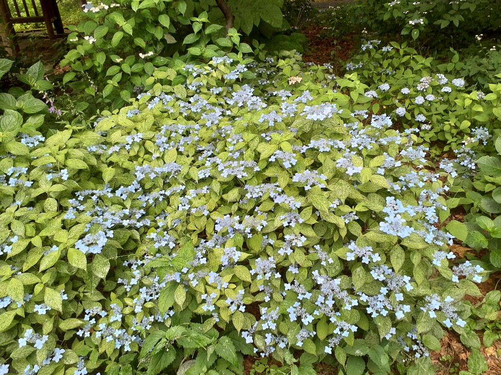 この四阿周辺にはヤマアジサイも植えてあり、もうきれいな色のガクを見ることができます。
