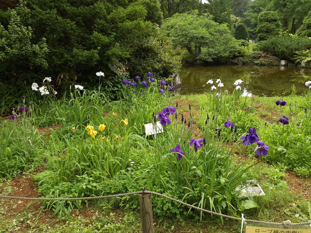 花色も水色や白、紫が多く、池の近くにハナショウブを植えているので涼やかに見えますね。
