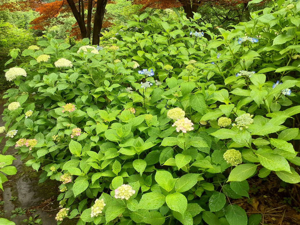 上の写真は豊平温水プールに近い四阿周辺にあるいろいろな品種のアジサイが植えられたエリアです。