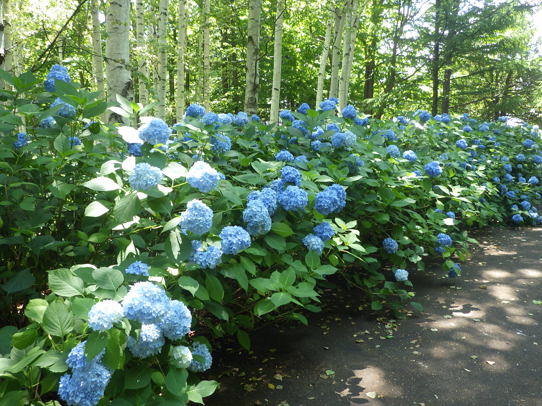 センター裏手のシラカバ林とアジサイは見ごろになりました。