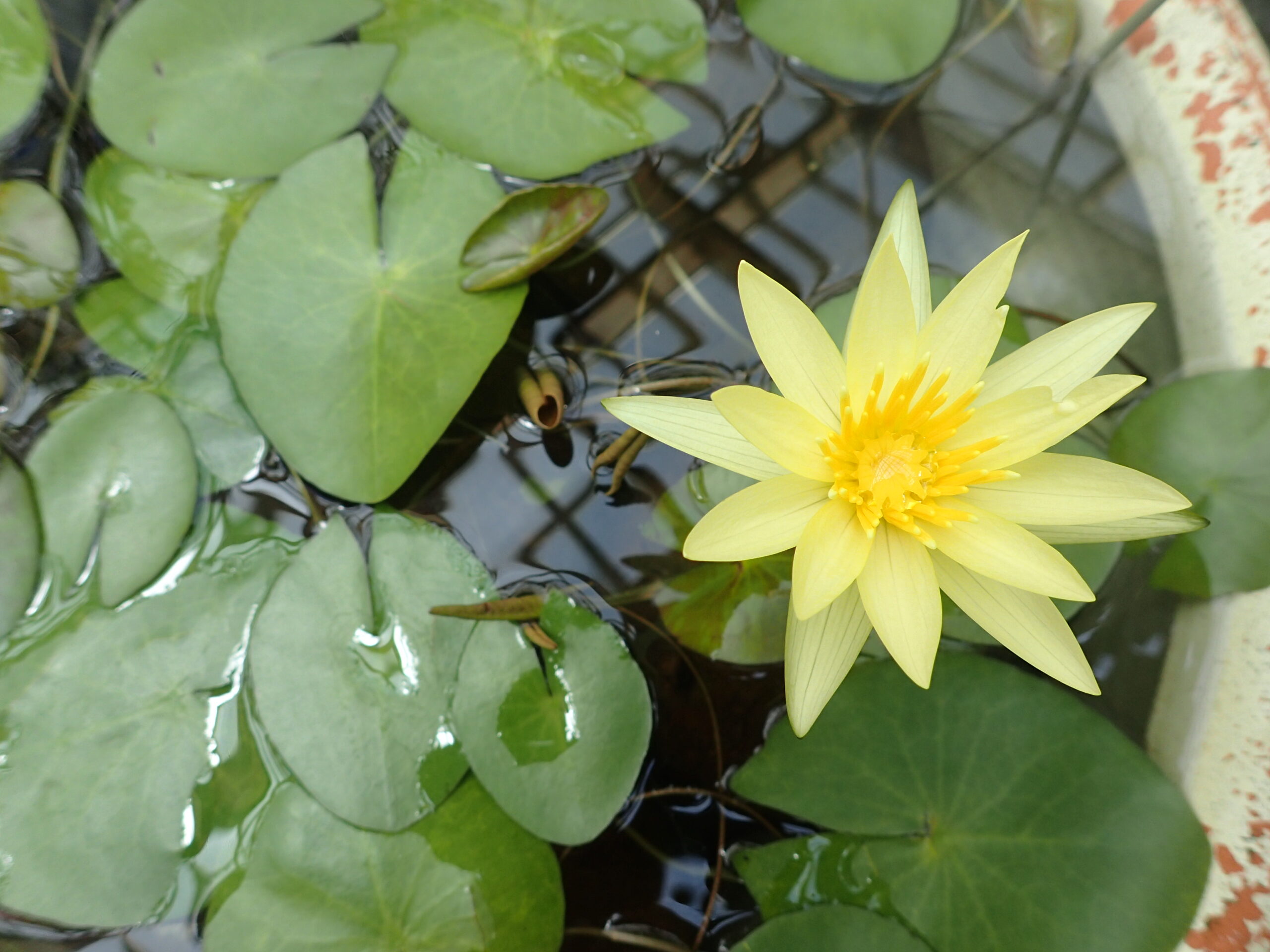 上の写真は熱帯スイレンの「セントルイスゴールド」。