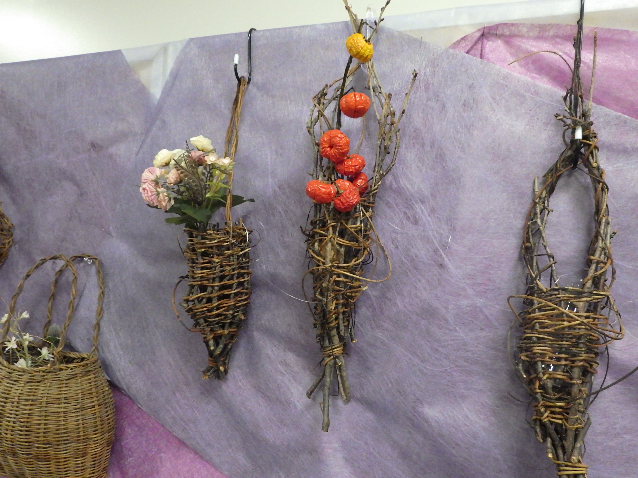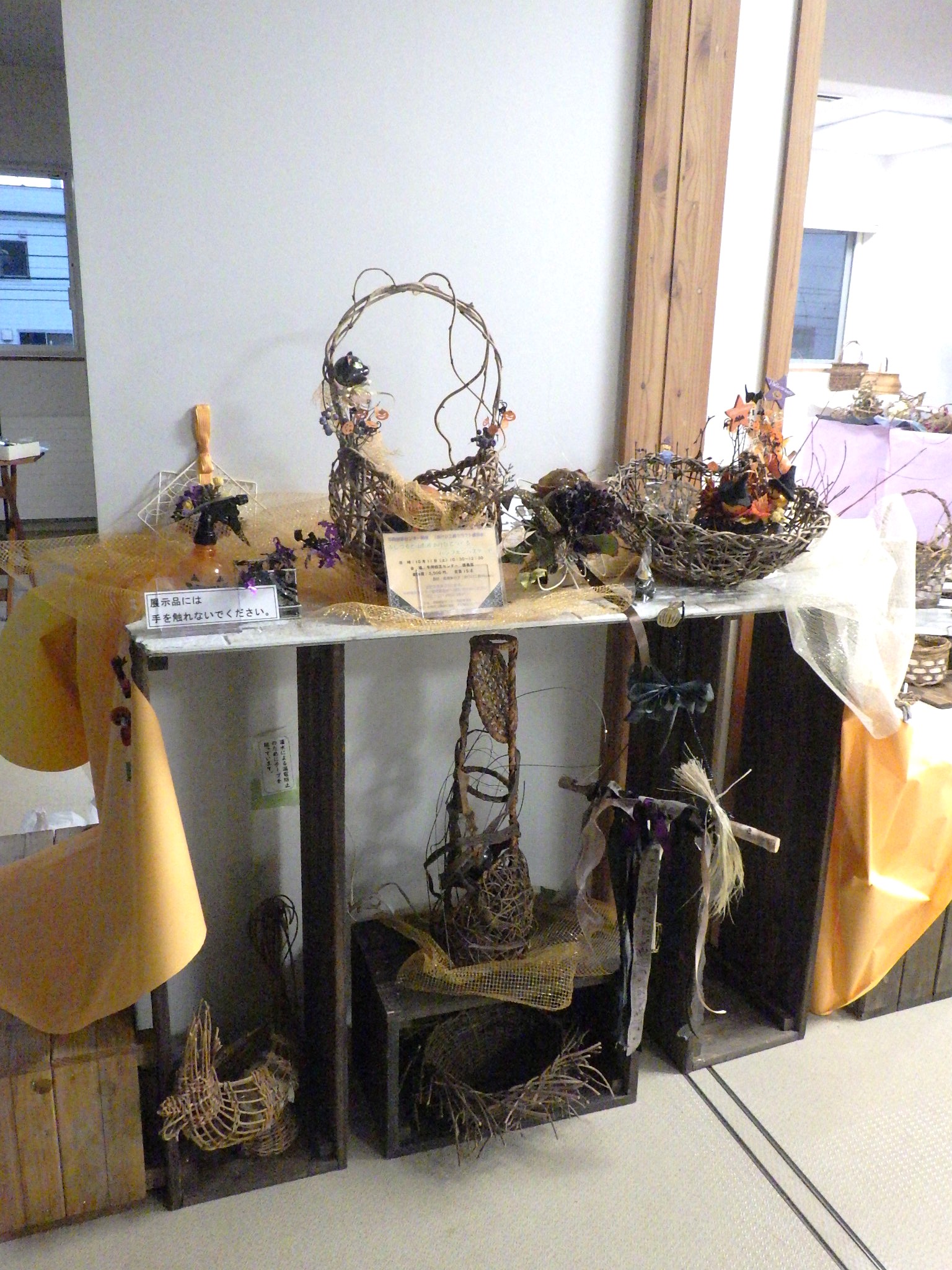 2階ミーティングルームにて「あけび・籐作品展~自然からの贈り物(くらしの中のかごつくり)~」