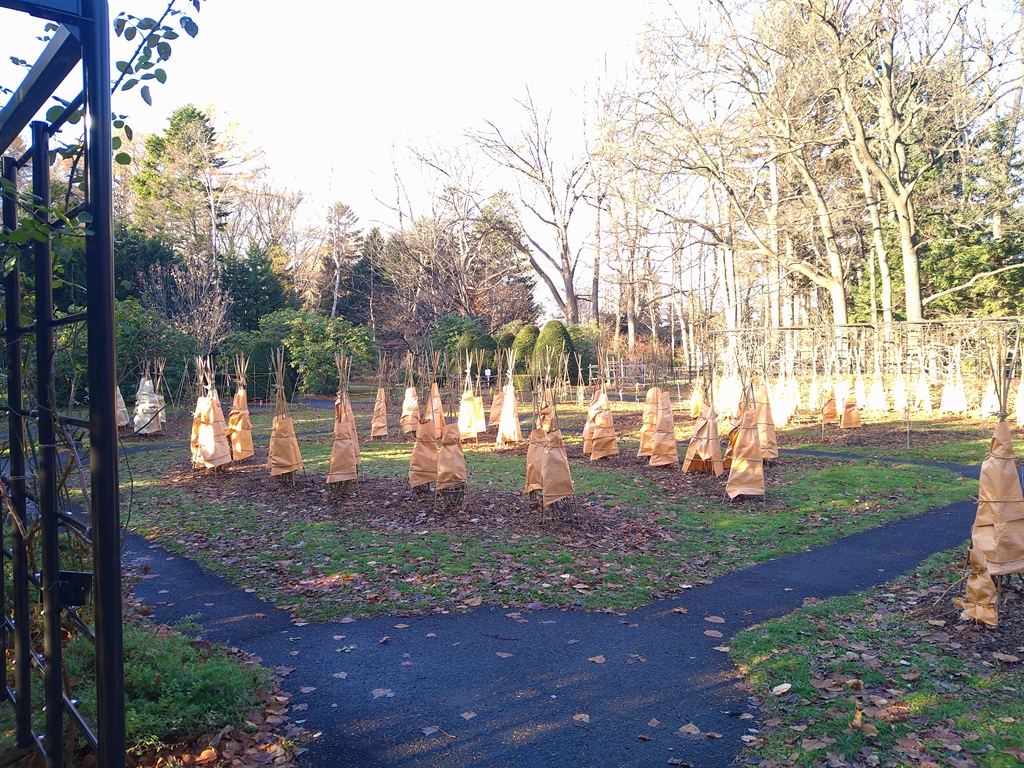 園内の雪は融けましたが、どんどん落ち葉が降り積もっています。