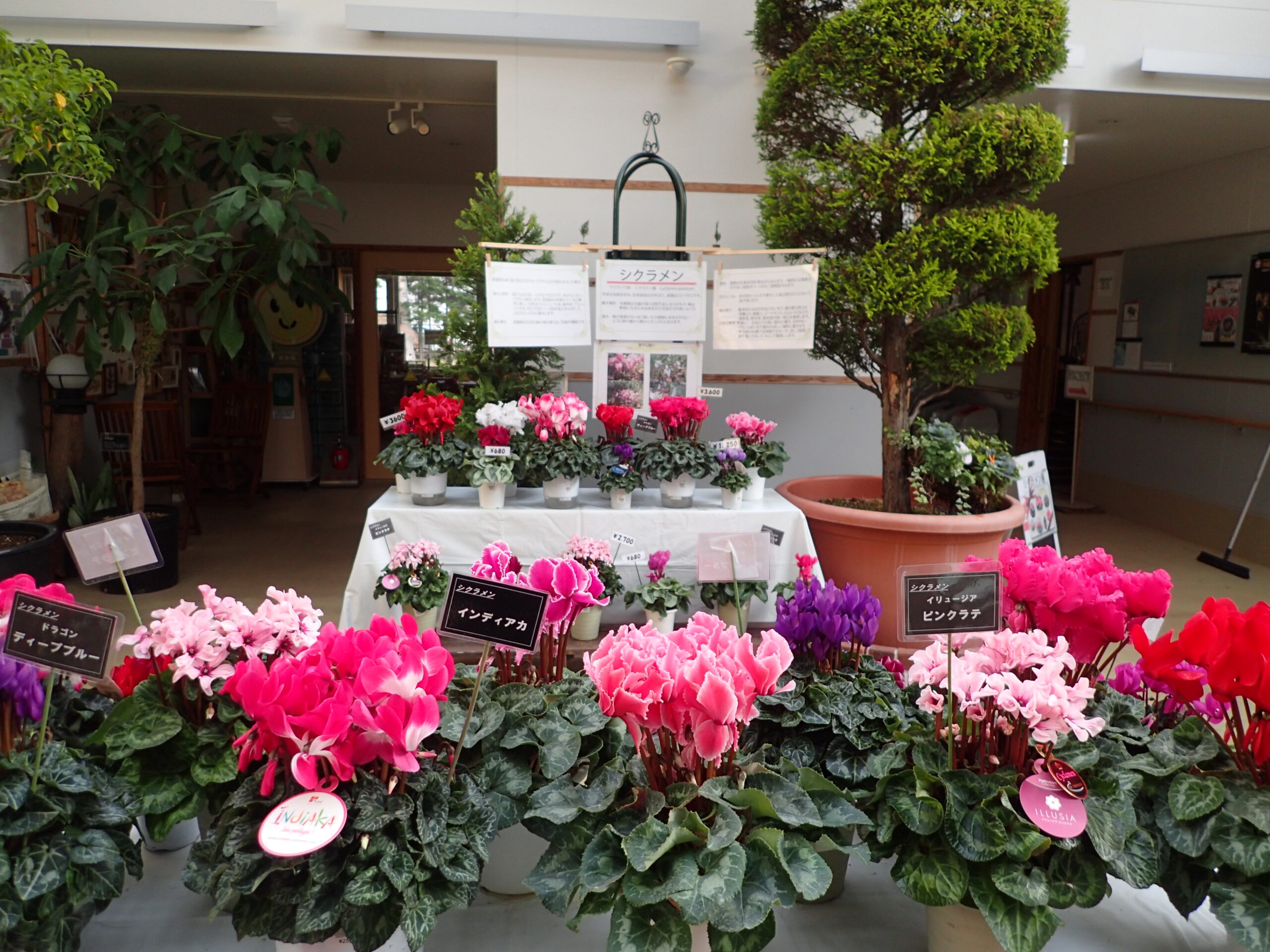 シクラメン展では、会場を飾るシクラメンの鉢をお買い求めいただけます。