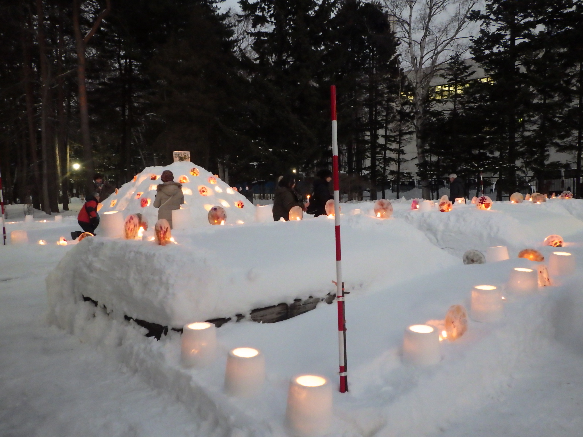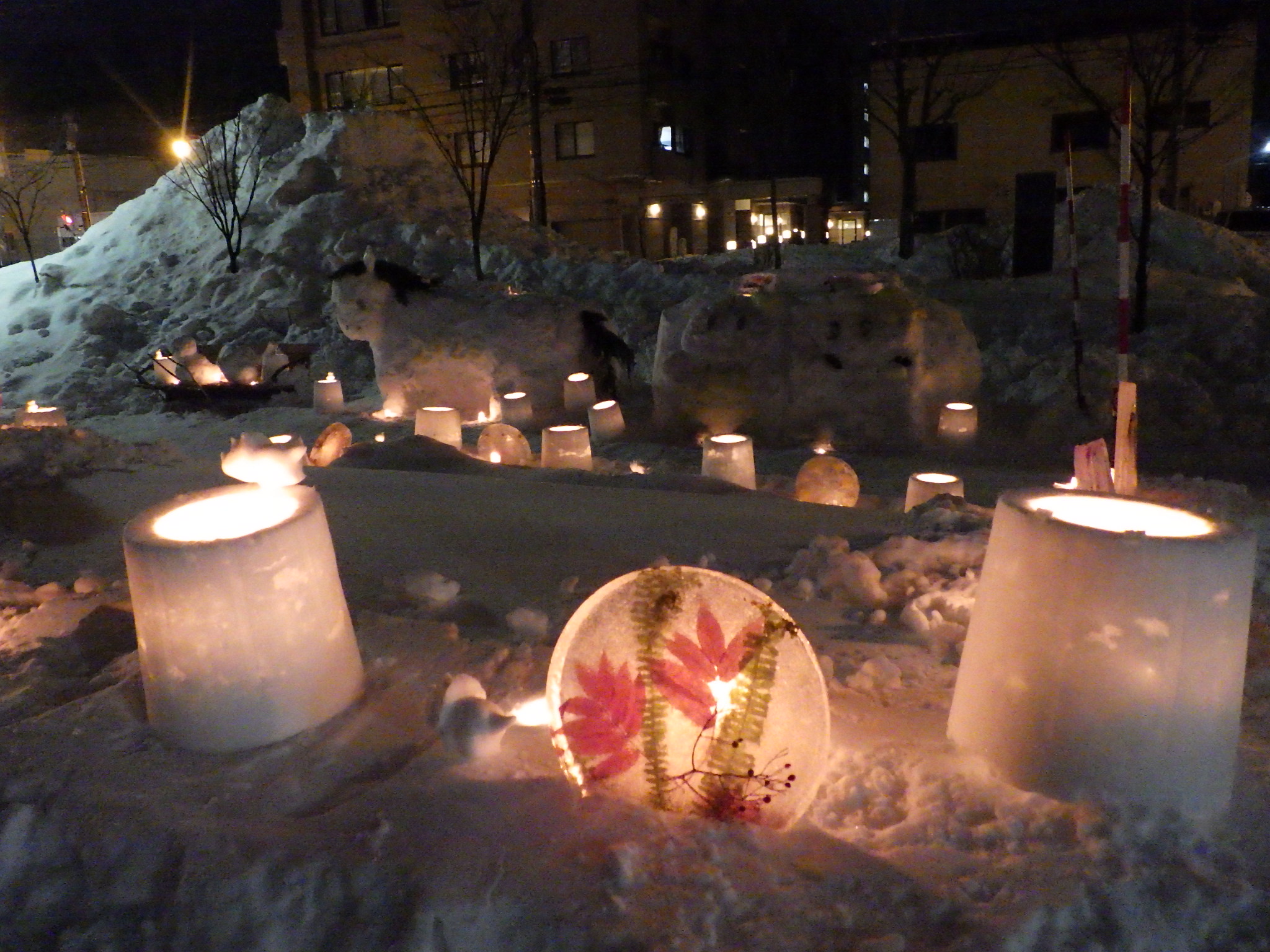 豊平公園で開催した一日だけの雪と氷とろうそくの灯りの祭典。
