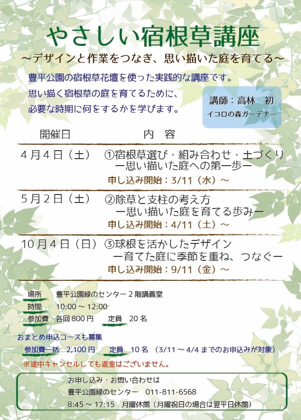 4月から始まる複数回シリーズの園芸講習の申込も3月11日からはじまります。