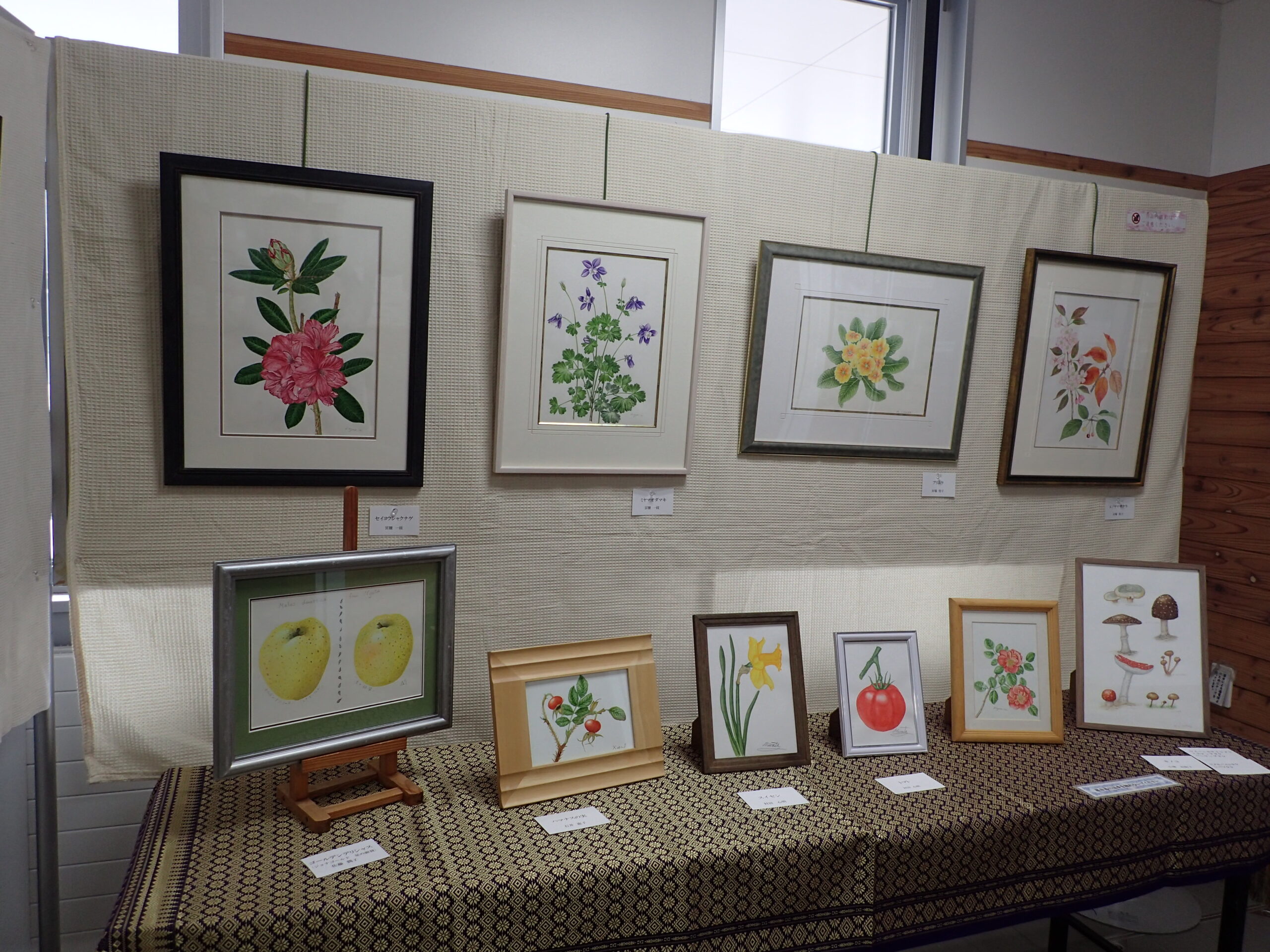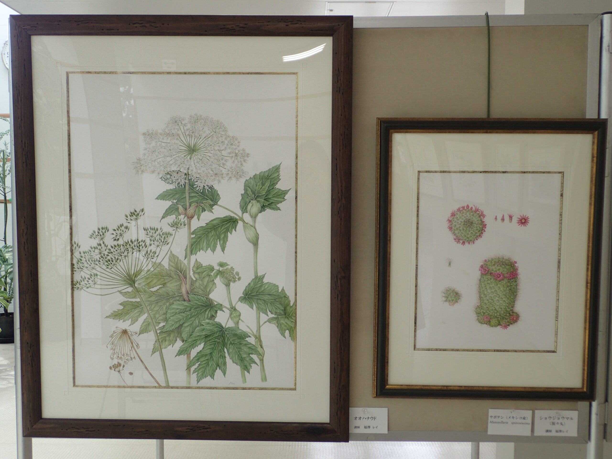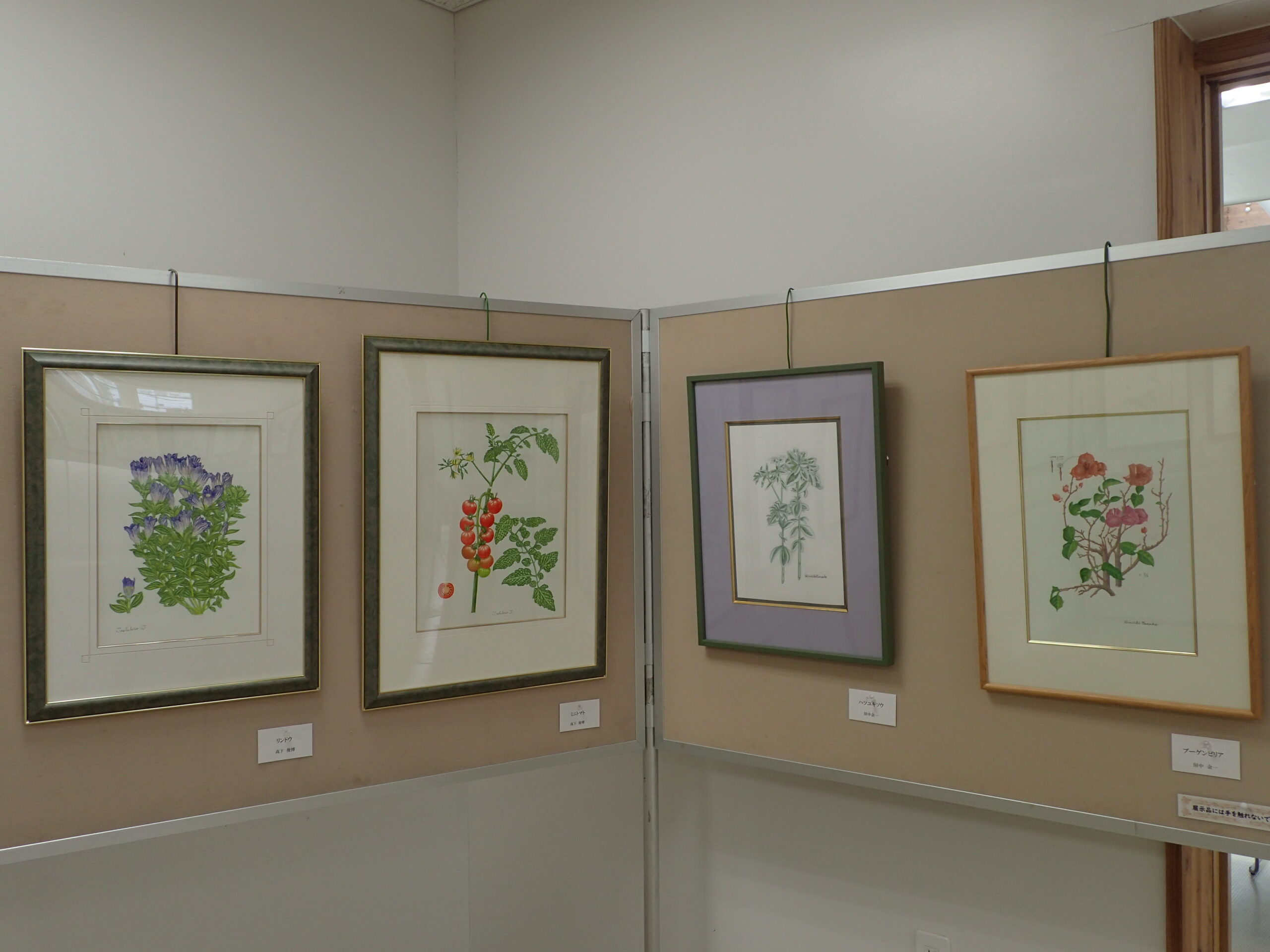 展示会場では、様々な植物たちの額作品が並んでいます。