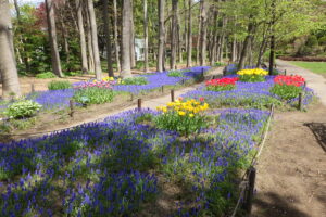 ここ数日はちょっと汗ばむくらいの暖かさ。 今年は花の開花もどんどん加速しているように感じますね。 先日ご紹介したムスカリの小径のチューリップが今日、ついに満開になりました。 お天気も良かったので写真も...