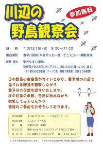 2012年10月21日(日)9:00~11:00に 川辺の野鳥観察会を開催いたします。
