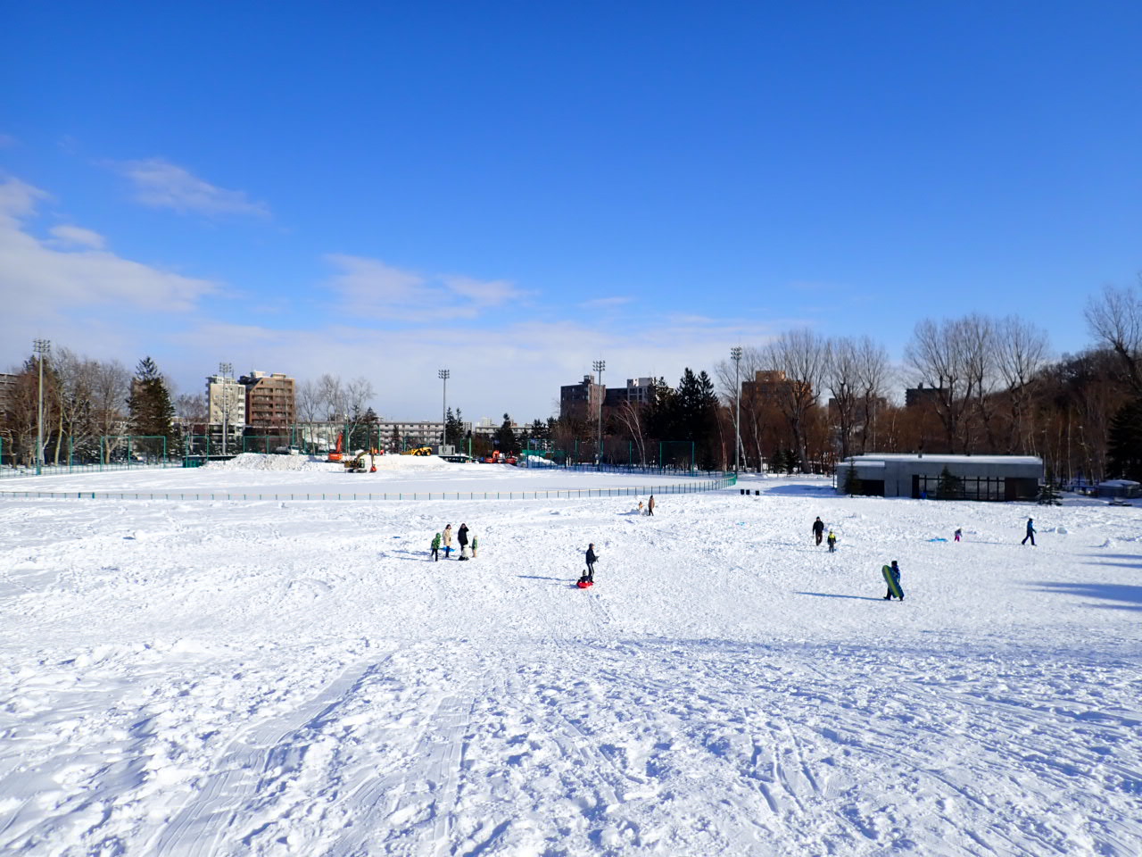 多目的広場の向こう側にある野球場には、これからたくさんの雪が運び込まれます