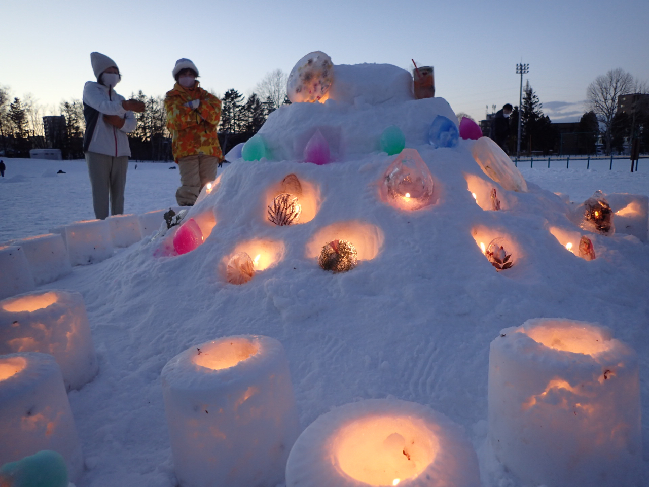 たくさんできたスノーキャンドル。暗くなってろうそくを灯すのが