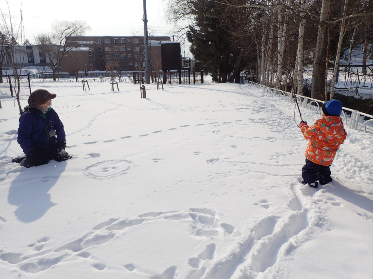 先週末のこども広場にはこんな可愛い雪遊びのあとが。