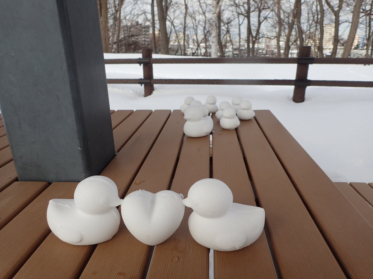 先週末には公園のいろんなところにこんな可愛い雪遊びのあとがたくさんあり、