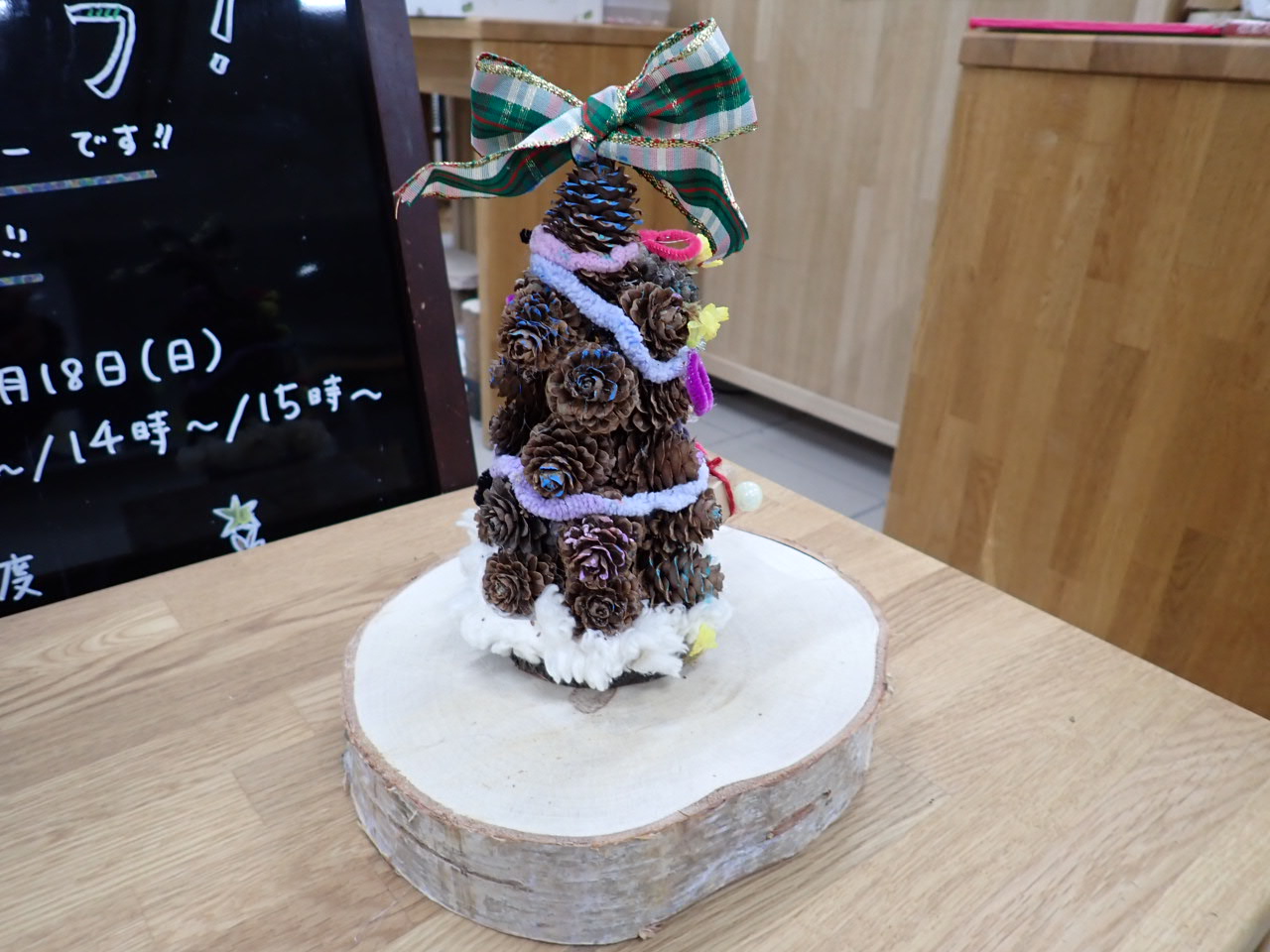 カラマツのまつぼっくりを積み上げるツリーもとても可愛いので、ぜひ作りにきてくださいね。