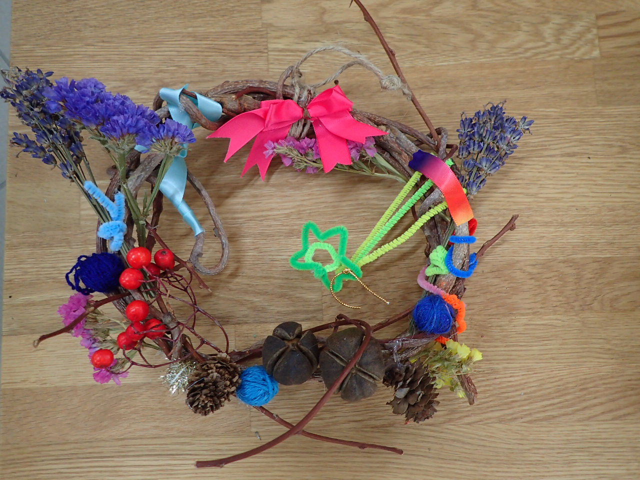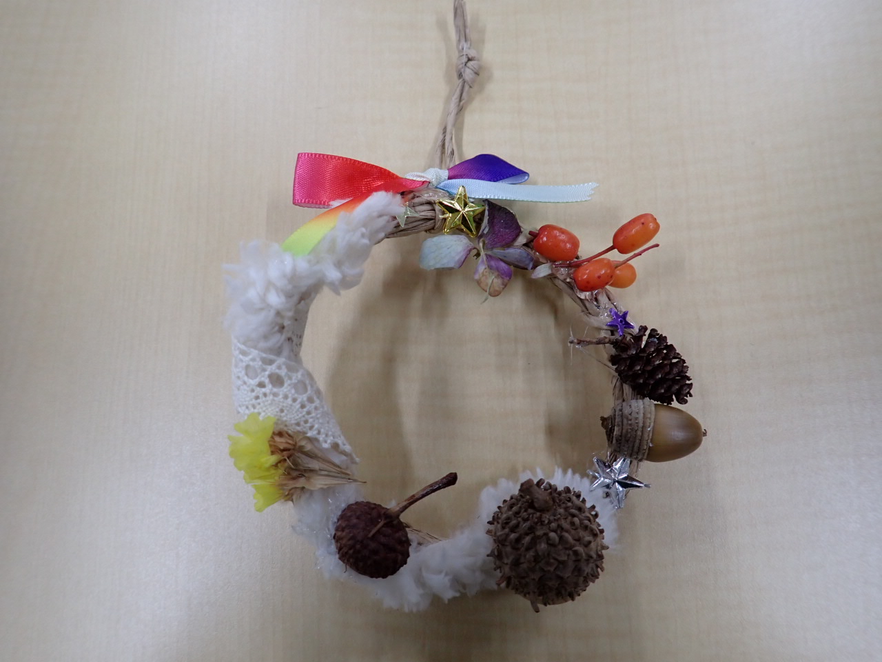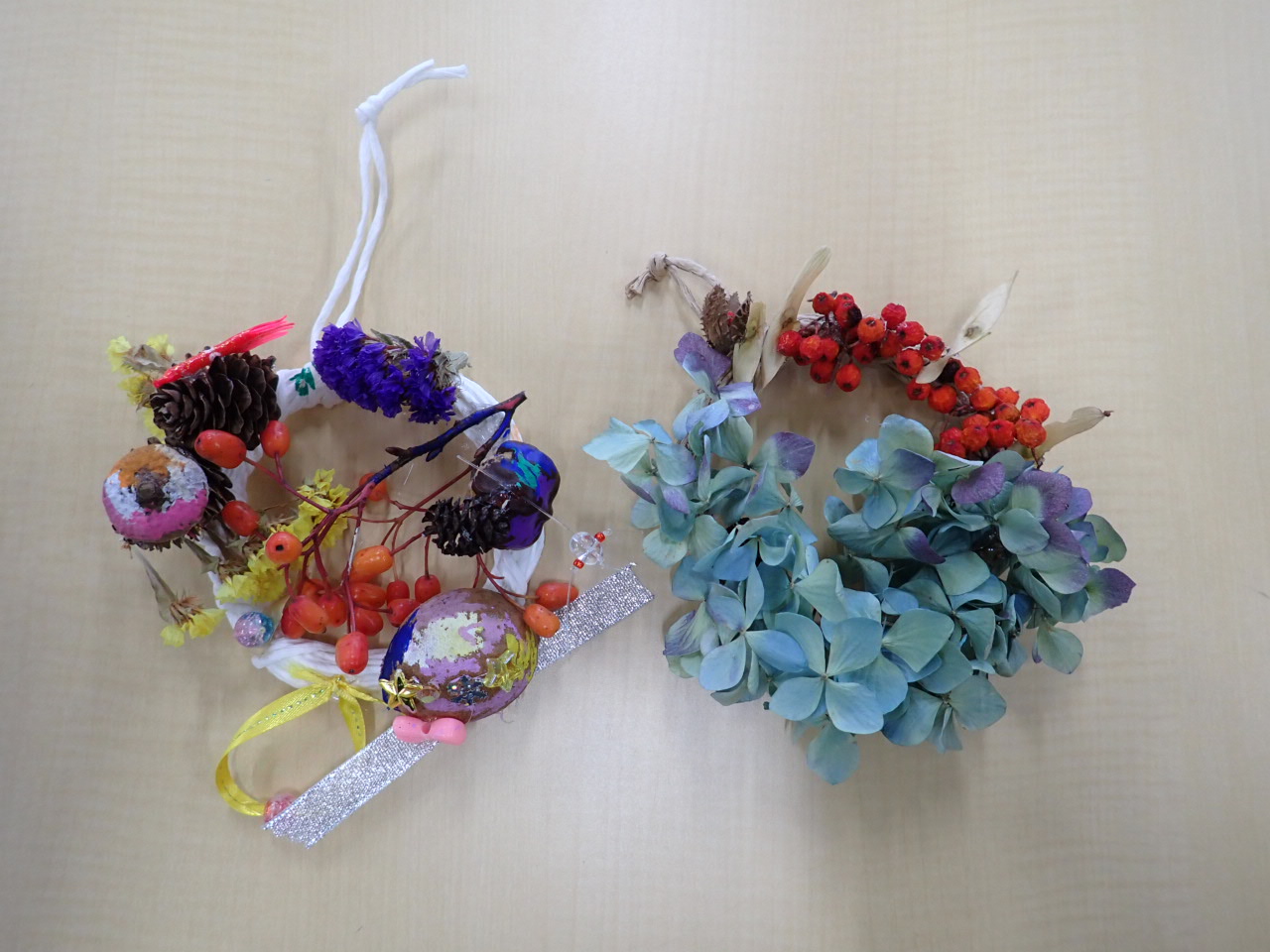 飾り付けをしました。クリスマスリースやナチュラルリース、みなさんの作品のご紹介です。