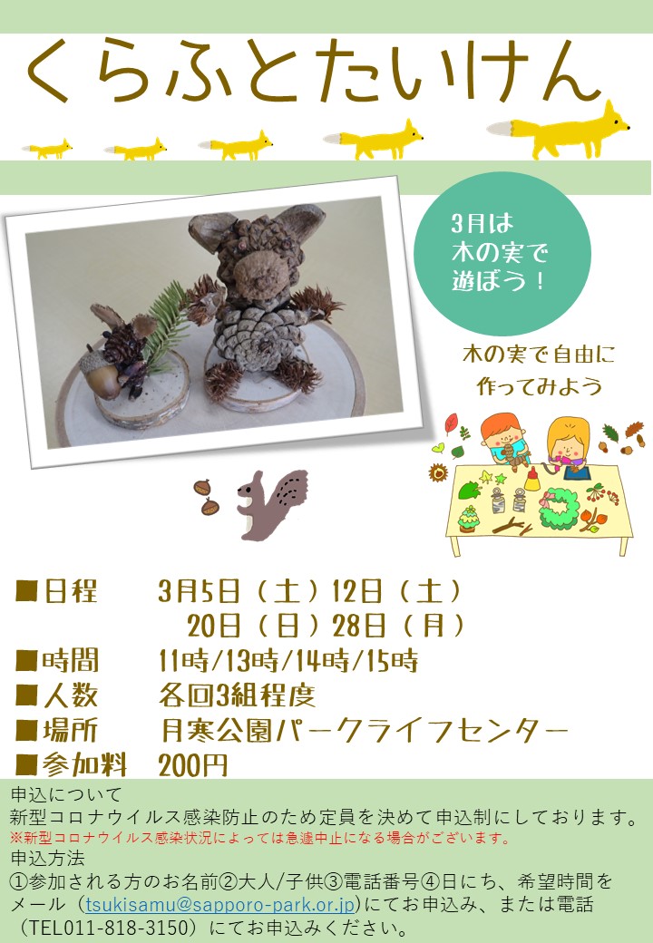 3月のくらふとたいけんのご案内です。
