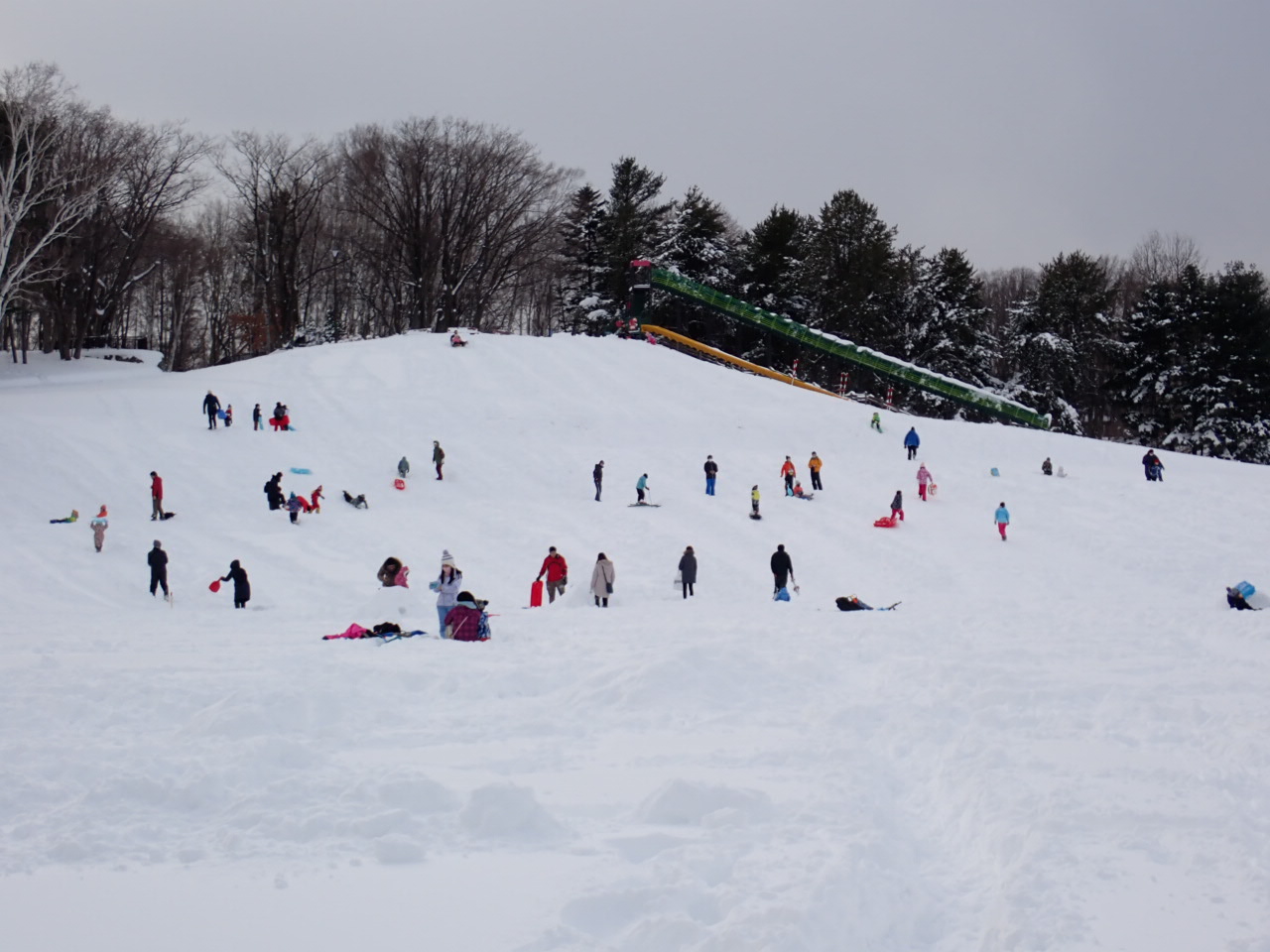 多目的広場はそり滑りやスキーの練習でたくさんの子ども達で賑わっています。