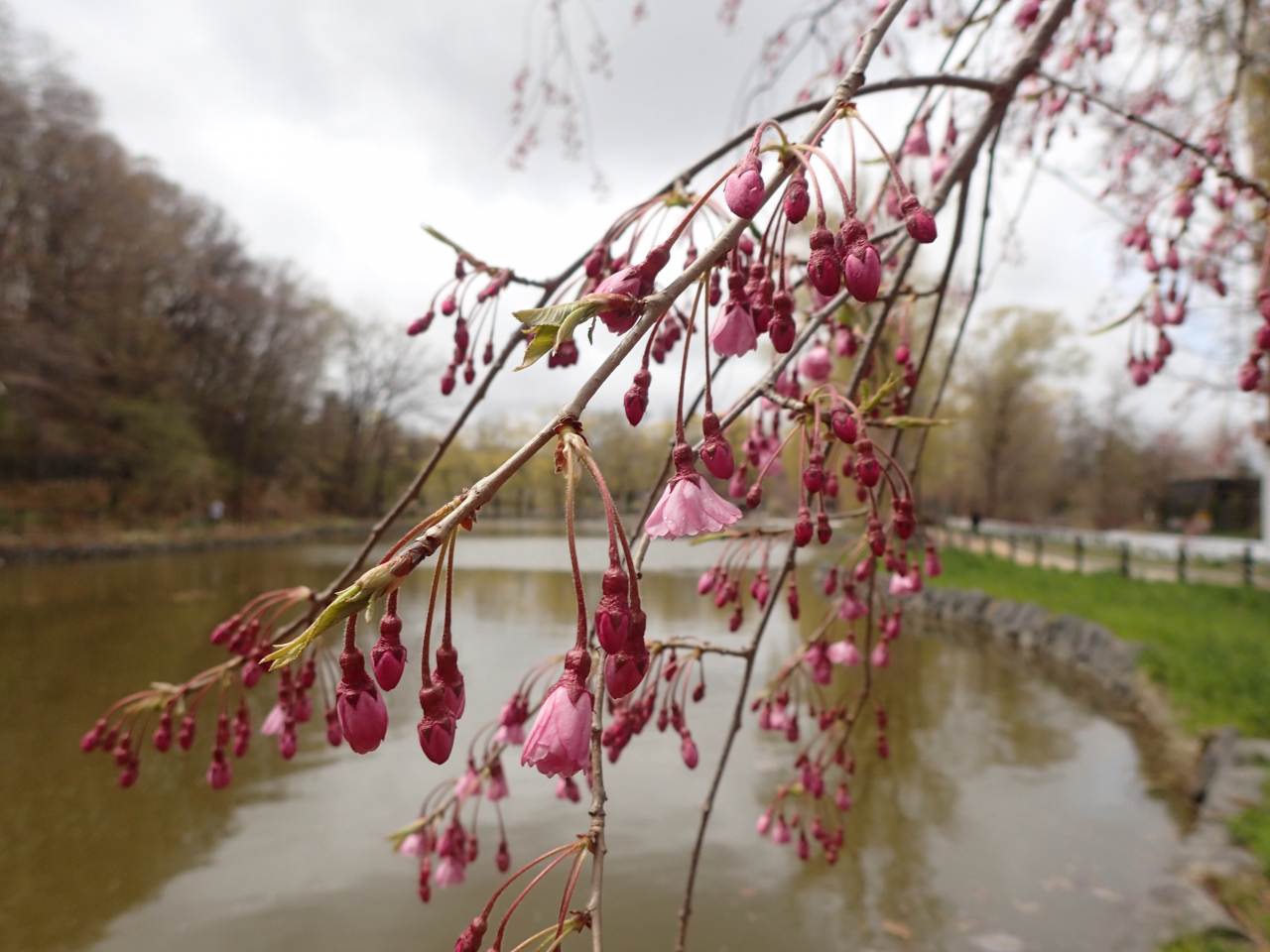 月寒公園にボート池の周りにあるシダレザクラが開花しました!