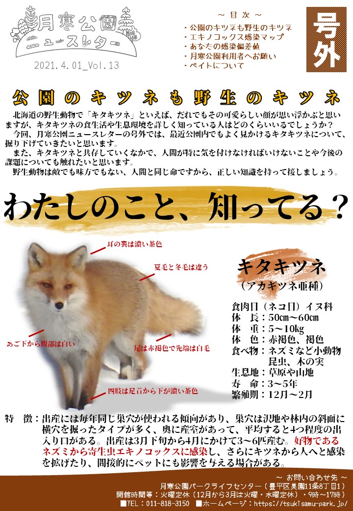 また、今回はニュースレターvol.13(号外)と題し、公園に生息しているキツネについての記事も発行しています。