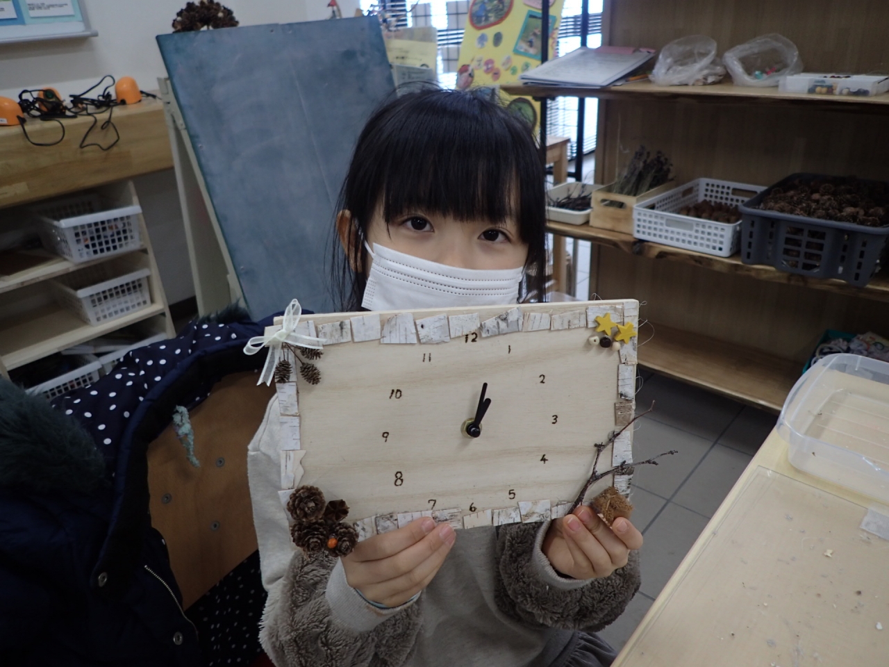6日土曜日は、2月のくらふとたいけん「木の実でつくる時計」の初日でした。