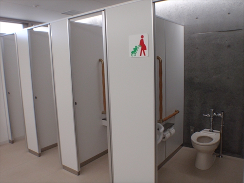 オムツ替えは、ユニバーサルトイレの中にオムツ替えシートがあります。使用済みオムツはお持ち帰りください。