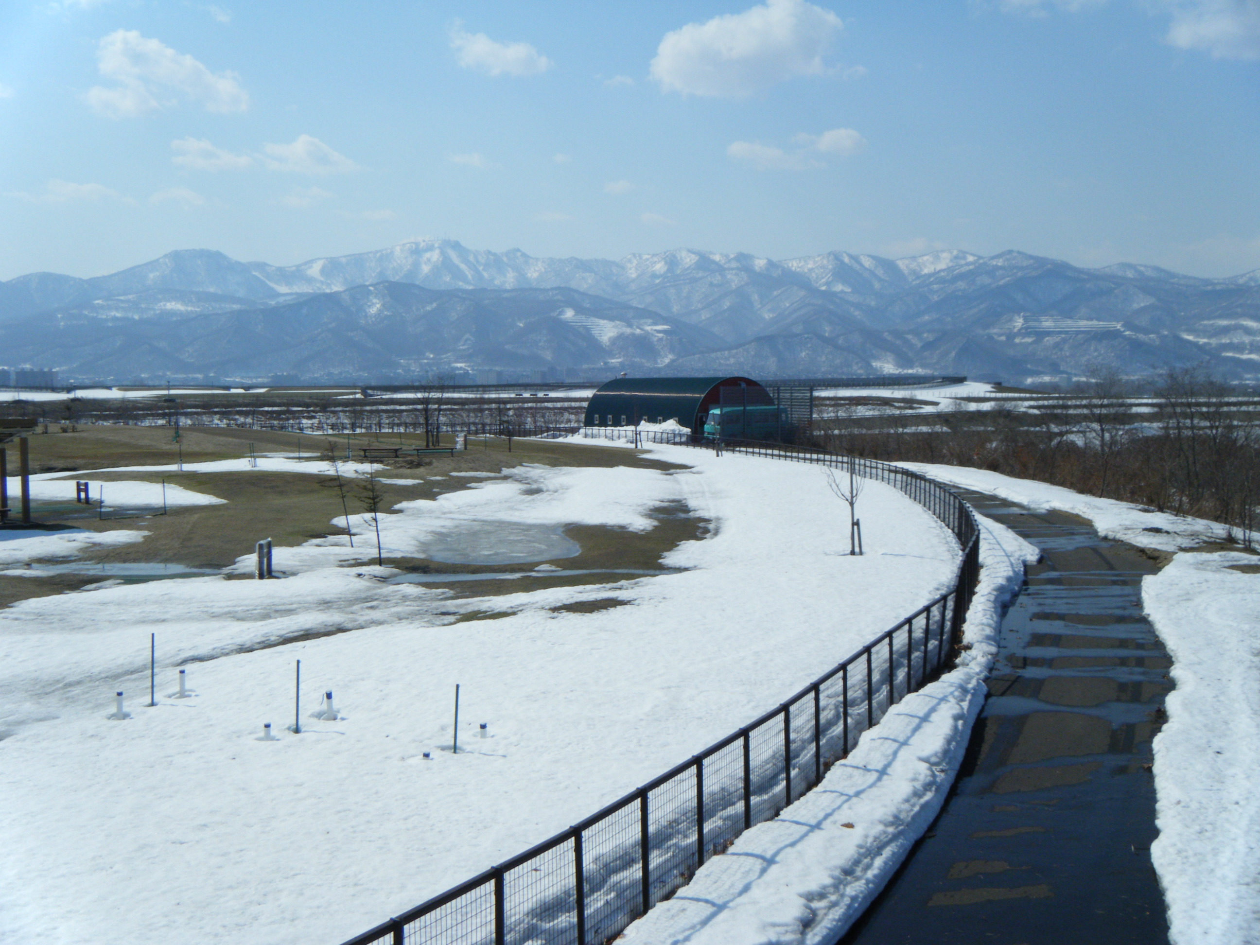 ここ山口緑地東パークゴルフ場でも融雪が進み、ところどころ芝生の緑が顔を出してきました。